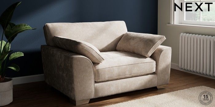 7.3.1 Buy Stamford Grand Relaxed Sit Snuggle Distressed Velour Mid Natural Large Square Angle - Chrome Metal from the Next UK online shop Click here to use our accessible website
