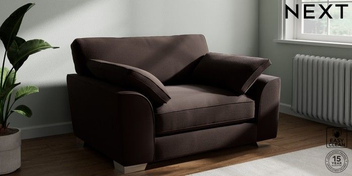 7.3.1 Buy Stamford Grand Relaxed Sit Snuggle Fine Chenille Easy Clean Chocolate Brown Large Square Angle - Chrome Metal from the Next UK online shop Click here to use our accessible website