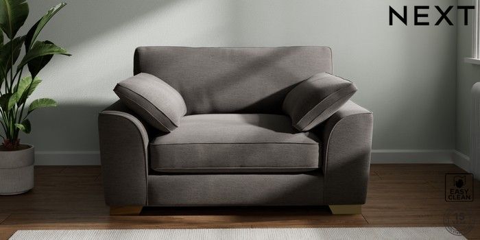 7.3.1 Buy Stamford Grand Relaxed Sit Snuggle Fine Chenille Easy Clean Dark Smoke Grey Large Square Angle - Brushed Brass from the Next UK online shop Click here to use our accessible website