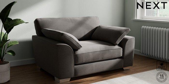 7.3.1 Buy Stamford Grand Relaxed Sit Snuggle Fine Chenille Easy Clean Dark Smoke Grey Large Square Angle - Chrome Metal from the Next UK online shop Click here to use our accessible website