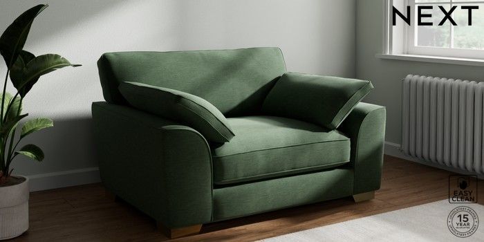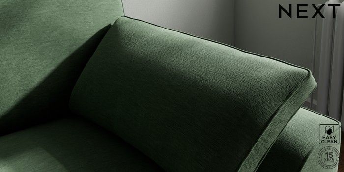 7.3.1 Buy Stamford Grand Relaxed Sit Snuggle Fine Chenille Easy Clean Mid Khaki Green Large Square Angle - Brushed Brass from the Next UK online shop Click here to use our accessible website