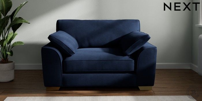 7.2.10 Buy Stamford Grand Relaxed Sit Snuggle Luxe Chenille Navy Blue Large Square Angle - Brushed Brass from the Next UK online shop Click here to use our accessible website