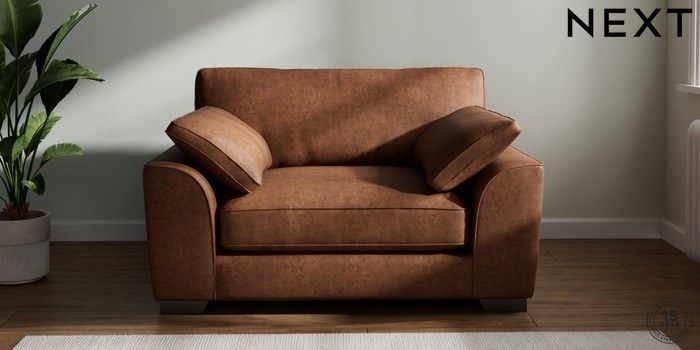 7.3.1 Buy Stamford Grand Relaxed Sit Snuggle Monza Faux Leather Easy Clean Chestnut Brown Large Square Angle - Gunmetal from the Next UK online shop
