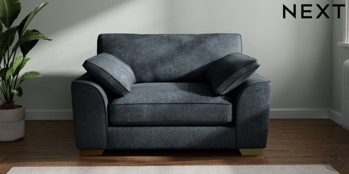 7.2.10 Buy Stamford Grand Relaxed Sit Snuggle Plush Chenille Slate Blue Large Square Angle - Brushed Brass from the Next UK online shop Click here to use our accessible website