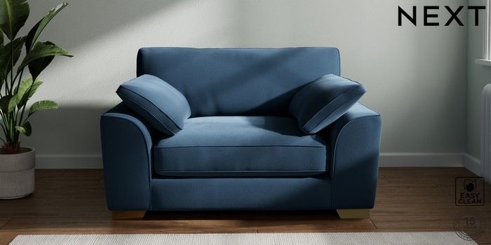 7.3.1 Buy Stamford Grand Relaxed Sit Snuggle Plush Velvet Easy Clean Airforce Blue Large Square Angle - Brushed Brass from the Next UK online shop Click here to use our accessible website