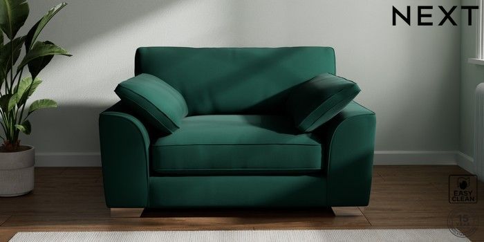 7.3.1 Buy Stamford Grand Relaxed Sit Snuggle Plush Velvet Easy Clean Bottle Green Large Square Angle - Chrome Metal from the Next UK online shop Click here to use our accessible website