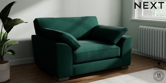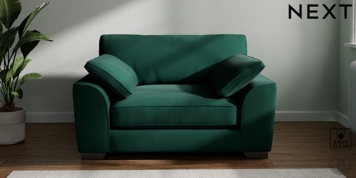 7.3.1 Buy Stamford Grand Relaxed Sit Snuggle Plush Velvet Easy Clean Bottle Green Large Square Angle - Gunmetal from the Next UK online shop Click here to use our accessible website