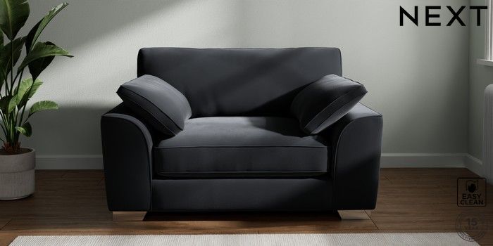 7.2.10 Buy Stamford Grand Relaxed Sit Snuggle Plush Velvet Easy Clean Charcoal Grey Large Square Angle - Chrome Metal from the Next UK online shop Click here to use our accessible website