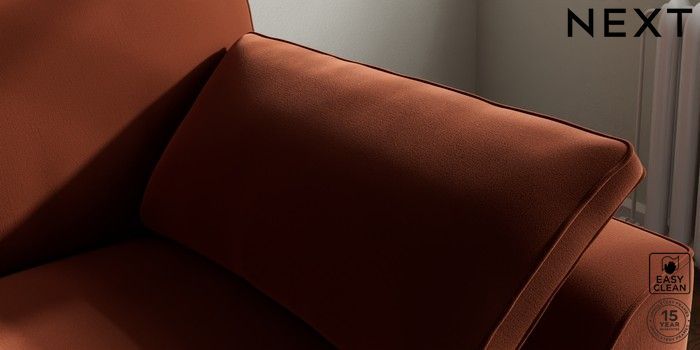7.3.1 Buy Stamford Grand Relaxed Sit Snuggle Plush Velvet Easy Clean Ginger Orange Large Square Angle - Brushed Brass from the Next UK online shop Click here to use our accessible website