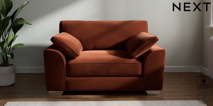 7.3.1 Buy Stamford Grand Relaxed Sit Snuggle Plush Velvet Easy Clean Ginger Orange Large Square Angle - Chrome Metal from the Next UK online shop Click here to use our accessible website