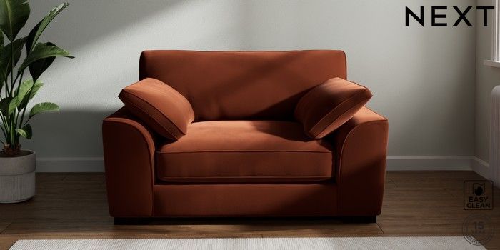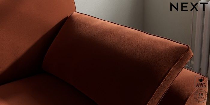 7.3.1 Buy Stamford Grand Relaxed Sit Snuggle Plush Velvet Easy Clean Ginger Orange Large Square Angle - Dark from the Next UK online shop Click here to use our accessible website