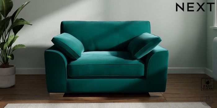7.3.1 Buy Stamford Grand Relaxed Sit Snuggle Plush Velvet Easy Clean Juniper Green Large Square Angle - Chrome Metal from the Next UK online shop