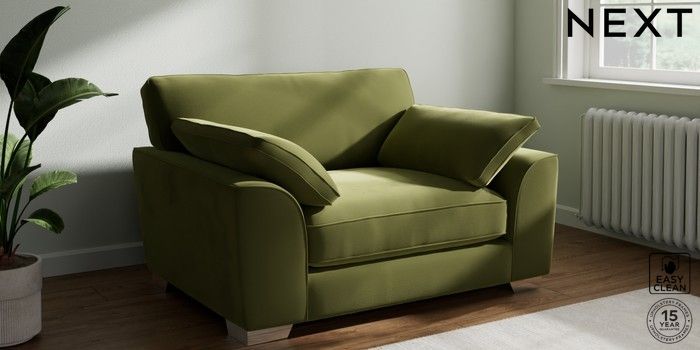 7.3.1 Buy Stamford Grand Relaxed Sit Snuggle Plush Velvet Easy Clean Mid Olive Green Large Square Angle - Chrome Metal from the Next UK online shop Click here to use our accessible website