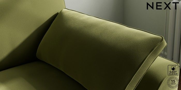 7.3.1 Buy Stamford Grand Relaxed Sit Snuggle Plush Velvet Easy Clean Mid Olive Green Large Square Angle - Gunmetal from the Next UK online shop Click here to use our accessible website