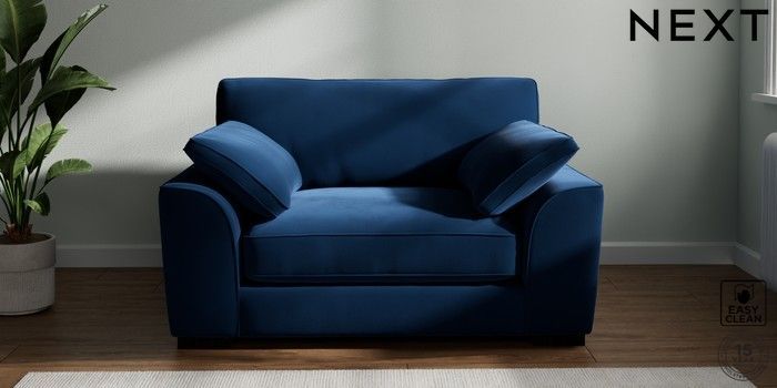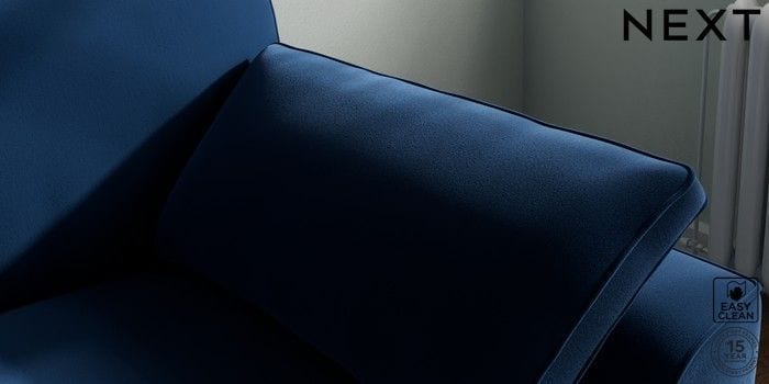 7.3.1 Buy Stamford Grand Relaxed Sit Snuggle Plush Velvet Easy Clean Navy Blue Large Square Angle - Dark from the Next UK online shop Click here to use our accessible website