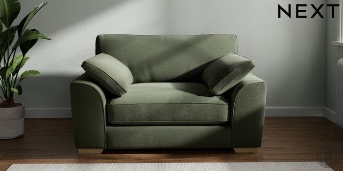 7.3.1 Buy Stamford Grand Relaxed Sit Snuggle Relaxed Linen Look Dark Green Large Square Angle - Light from the Next UK online shop Click here to use our accessible website