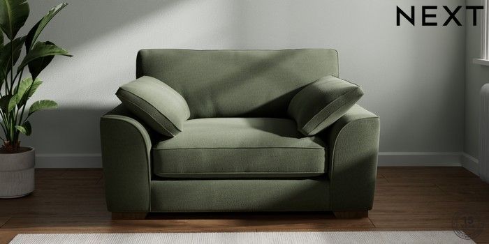 7.3.1 Buy Stamford Grand Relaxed Sit Snuggle Relaxed Linen Look Dark Green Large Square Angle - Mid from the Next UK online shop Click here to use our accessible website
