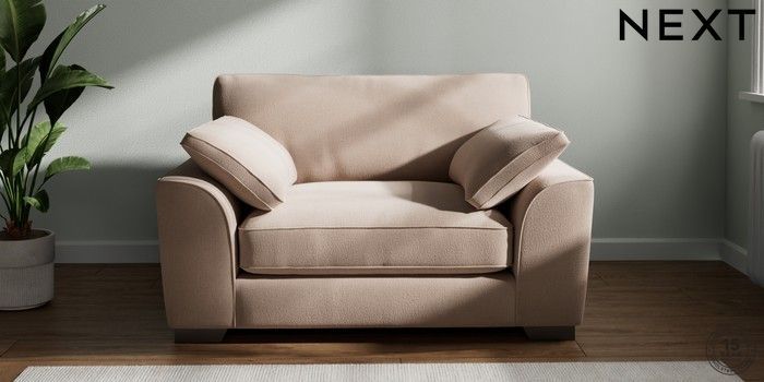7.3.1 Buy Stamford Grand Relaxed Sit Snuggle Relaxed Linen Look Mid Natural Large Square Angle - Gunmetal from the Next UK online shop Click here to use our accessible website