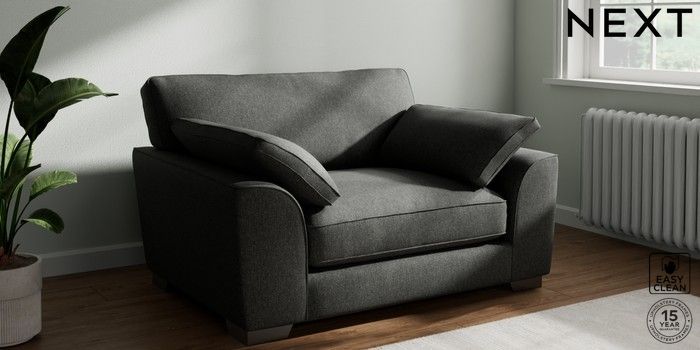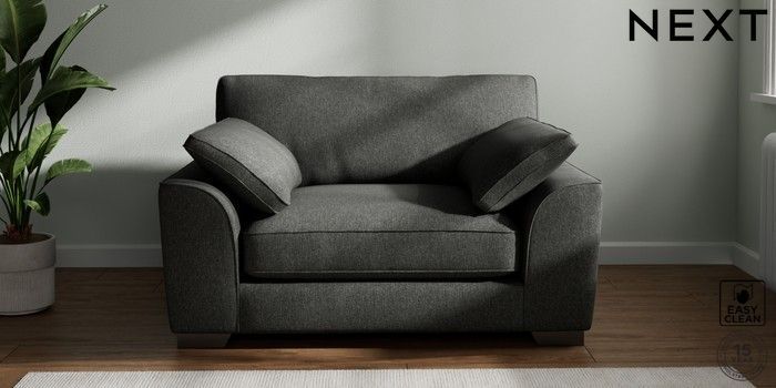 7.3.1 Buy Stamford Grand Relaxed Sit Snuggle Tweedy Blend Easy Clean Charcoal Grey Large Square Angle - Gunmetal from the Next UK online shop Click here to use our accessible website