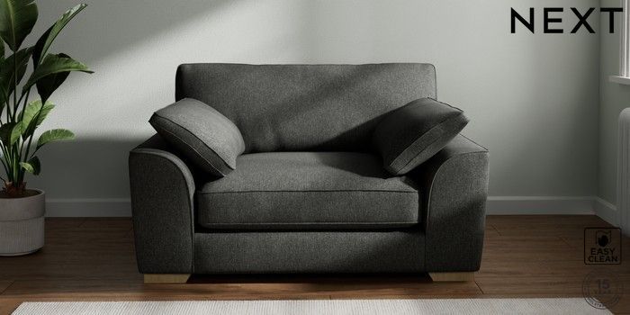 7.3.1 Buy Stamford Grand Relaxed Sit Snuggle Tweedy Blend Easy Clean Charcoal Grey Large Square Angle - Light from the Next UK online shop Click here to use our accessible website