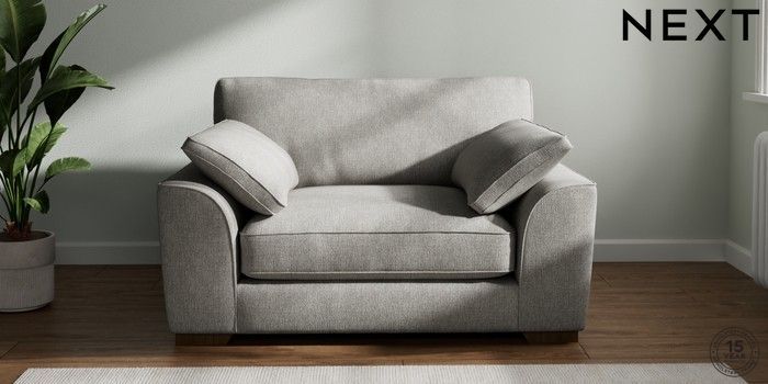 7.2.10 Buy Stamford Grand Relaxed Sit Snuggle Tweedy Chenille Mid Grey Large Square Angle - Mid from the Next UK online shop Click here to use our accessible website