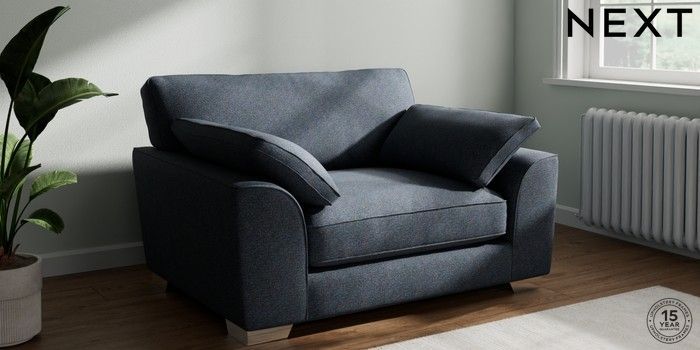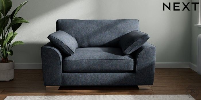 7.3.1 Buy Stamford Grand Relaxed Sit Snuggle Tweedy Chenille Navy Blue Large Square Angle - Chrome Metal from the Next UK online shop Click here to use our accessible website