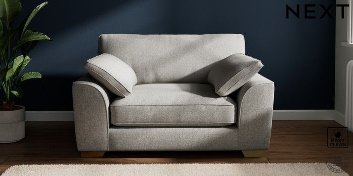 7.2.10 Buy Stamford Grand Relaxed Sit Snuggle Woven Chenille Easy Clean Light Grey Large Square Angle - Brushed Brass from the Next UK online shop Click here to use our accessible website