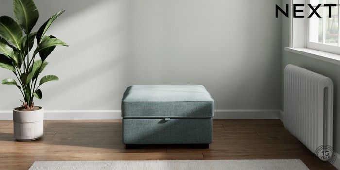 7.2.10 Buy Stamford Grand Relaxed Sit Storage Footstool Chunky Chenille Light Teal Green Square Angle - Dark from the Next UK online shop Click here to use our accessible website