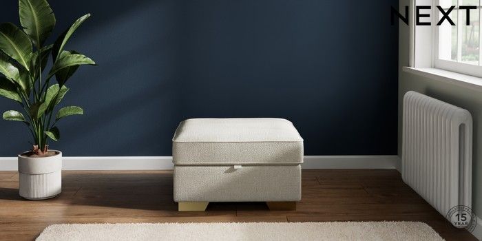 7.2.10 Buy Stamford Grand Relaxed Sit Storage Footstool Chunky Texture Oyster Square Angle - Brushed Brass from the Next UK online shop Click here to use our accessible website