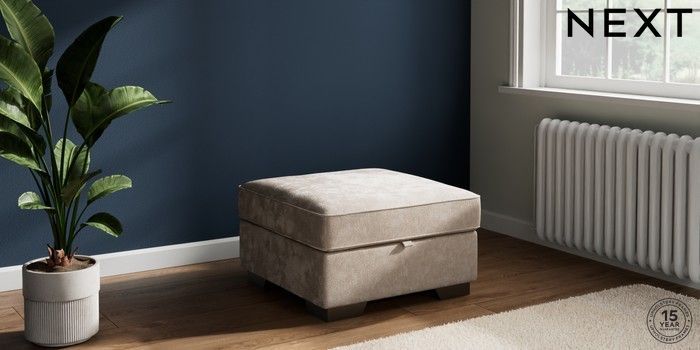 7.3.1 Buy Stamford Grand Relaxed Sit Storage Footstool Distressed Velour Mid Natural Square Angle - Gunmetal from the Next UK online shop Click here to use our accessible website