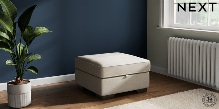 7.3.1 Buy Stamford Grand Relaxed Sit Storage Footstool Tweedy Chenille Oyster Square Angle - Gunmetal from the Next UK online shop Click here to use our accessible website