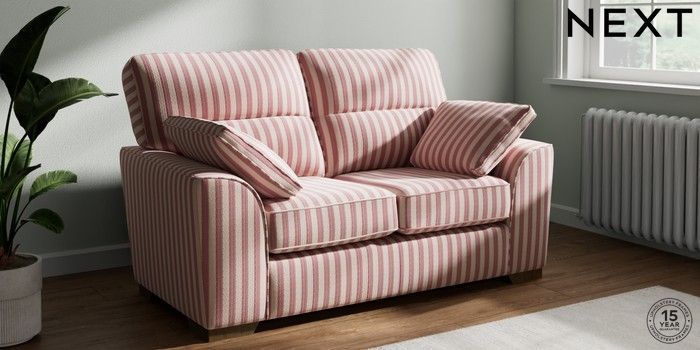 7.3.1 Buy Stamford Highback 2 Seater Small Sofa Bold Chenille Stripe Dark Pink Large Square Angle - Mid from the Next UK online shop Click here to use our accessible website