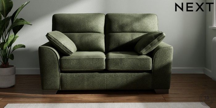 7.2.6 Buy Stamford Highback 2 Seater Small Sofa Boucle Chenille Dark Moss Green Large Square Angle - Gunmetal from the Next UK online shop Click here to use our accessible website