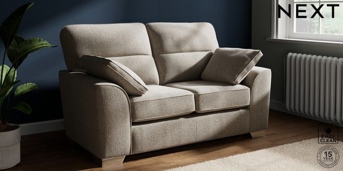 7.3.1 Buy Stamford Highback 2 Seater Small Sofa Chunky Boucle Easy Clean Dove Large Square Angle - Chrome Metal from the Next UK online shop Click here to use our accessible website