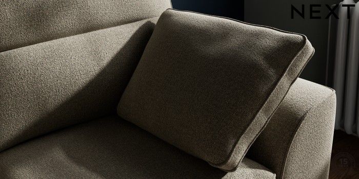 7.2.10 Buy Stamford Highback 2 Seater Small Sofa Chunky Marl Light Olive Green Large Square Angle - Brushed Brass from the Next UK online shop Click here to use our accessible website
