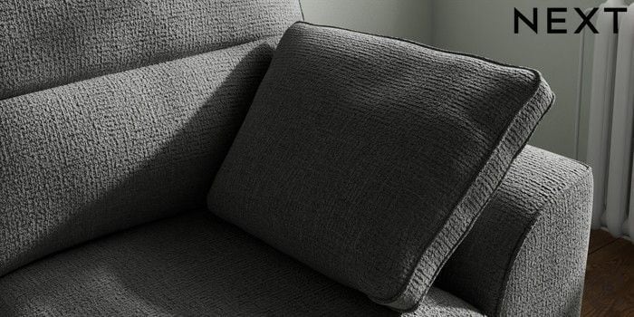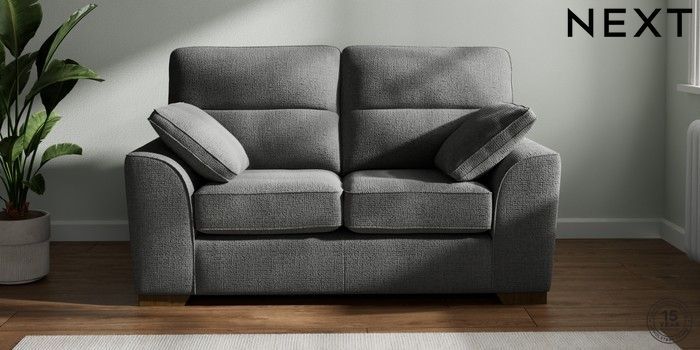 7.2.10 Buy Stamford Highback 2 Seater Small Sofa Chunky Texture Dark Grey Large Square Angle - Mid from the Next UK online shop Click here to use our accessible website