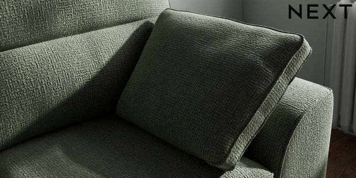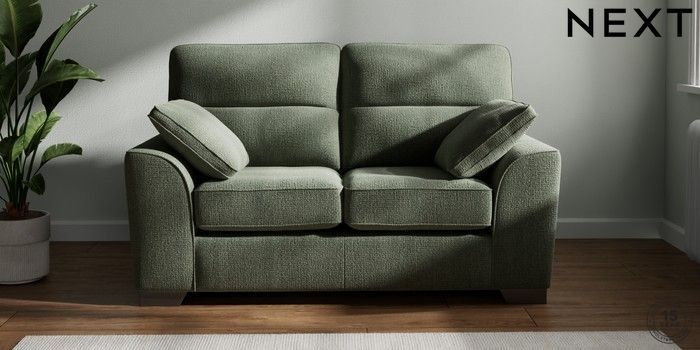 7.2.10 Buy Stamford Highback 2 Seater Small Sofa Chunky Texture Mid Forest Green Large Square Angle - Gunmetal from the Next UK online shop Click here to use our accessible website