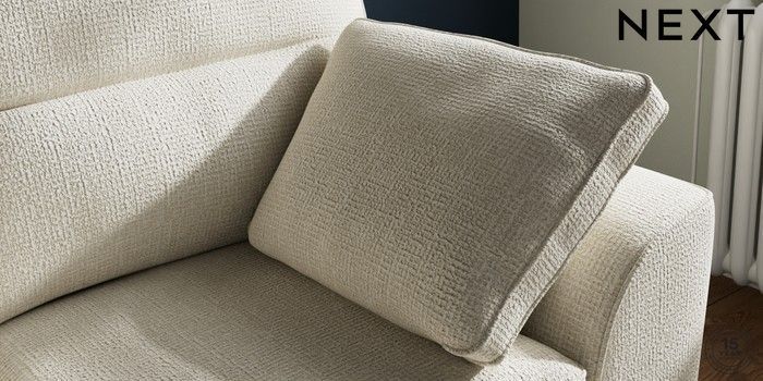 7.2.10 Buy Stamford Highback 2 Seater Small Sofa Chunky Texture Oyster Large Square Angle - Brushed Brass from the Next UK online shop Click here to use our accessible website