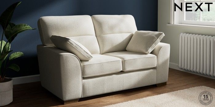 7.2.10 Buy Stamford Highback 2 Seater Small Sofa Chunky Texture Oyster Large Square Angle - Mid from the Next UK online shop Click here to use our accessible website