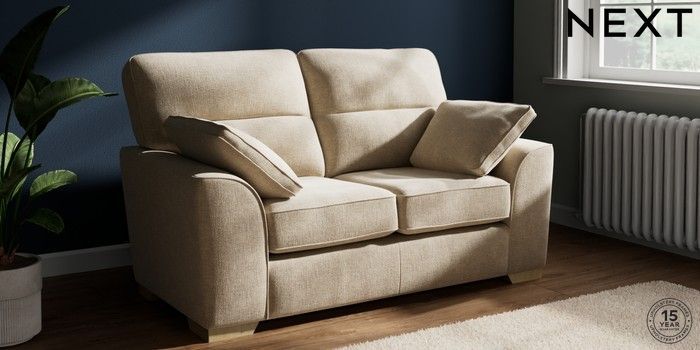 7.2.10 Buy Stamford Highback 2 Seater Small Sofa Chunky Weave Cream Large Square Angle - Light from the Next UK online shop Click here to use our accessible website