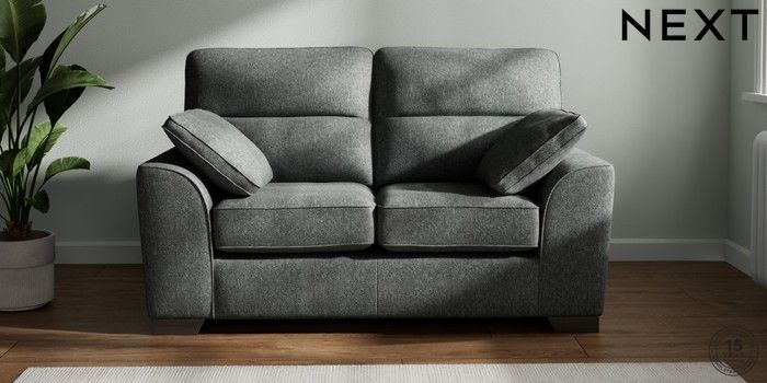 6.12.1 Buy Stamford Highback 2 Seater Small Sofa Cotswold Chenille Dark Grey Large Square Angle - Gunmetal from the Next UK online shop Click here to use our accessible website