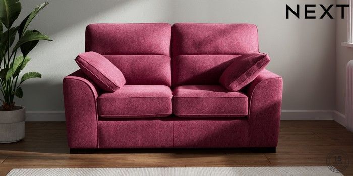 7.2.6 Buy Stamford Highback 2 Seater Small Sofa Cotswold Chenille Dark Raspberry Pink Large Square Angle - Dark from the Next UK online shop Click here to use our accessible website