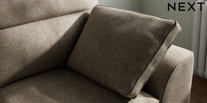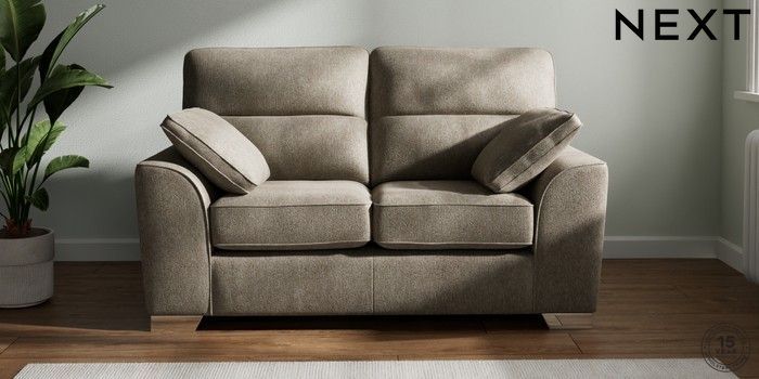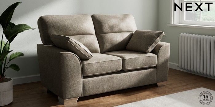 7.2.6 Buy Stamford Highback 2 Seater Small Sofa Cotswold Chenille Mid Mink Brown Large Square Angle - Chrome Metal from the Next UK online shop Click here to use our accessible website