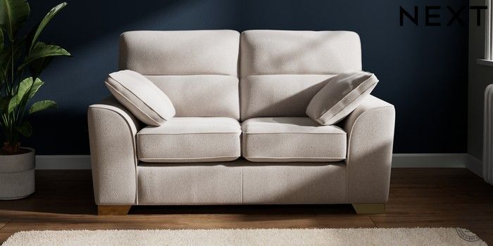 7.2.6 Buy Stamford Highback 2 Seater Small Sofa Cotswold Chenille Oyster Large Square Angle - Brushed Brass from the Next UK online shop Click here to use our accessible website