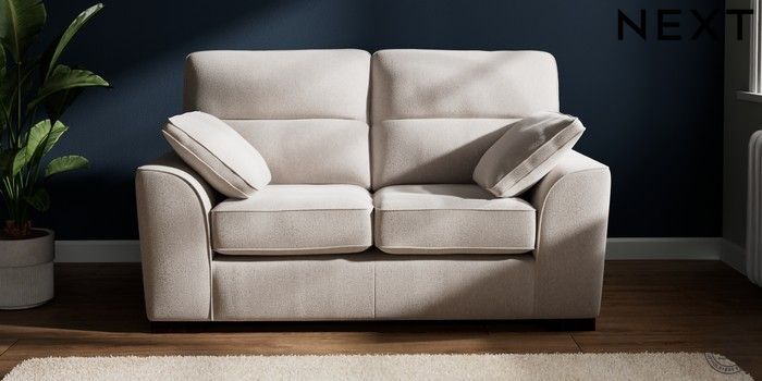 7.2.6 Buy Stamford Highback 2 Seater Small Sofa Cotswold Chenille Oyster Large Square Angle - Dark from the Next UK online shop Click here to use our accessible website