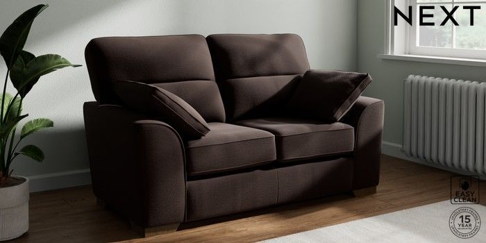 7.2.10 Buy Stamford Highback 2 Seater Small Sofa Fine Chenille Easy Clean Chocolate Brown Large Square Angle - Mid from the Next UK online shop Click here to use our accessible website