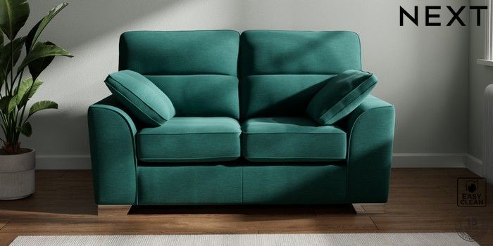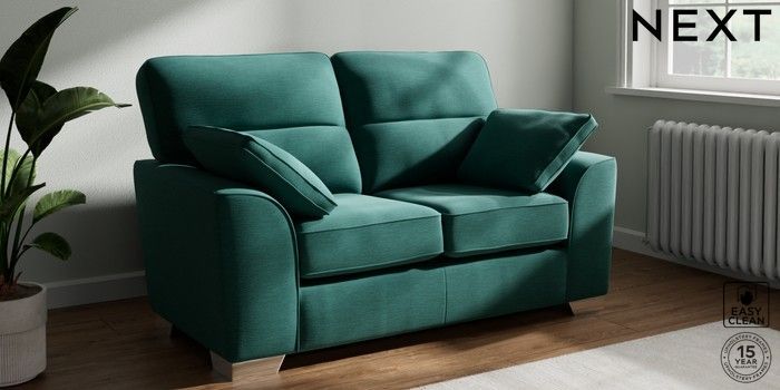 7.3.1 Buy Stamford Highback 2 Seater Small Sofa Fine Chenille Easy Clean Dark Juniper Green Large Square Angle - Chrome Metal from the Next UK online shop Click here to use our accessible website