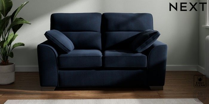 7.2.6 Buy Stamford Highback 2 Seater Small Sofa Fine Chenille Easy Clean Dark Navy Blue Large Square Angle - Gunmetal from the Next UK online shop Click here to use our accessible website