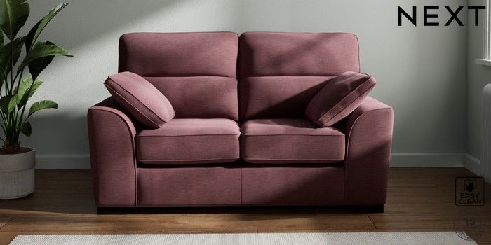 7.2.6 Buy Stamford Highback 2 Seater Small Sofa Fine Chenille Easy Clean Mid Mulberry Purple Large Square Angle - Dark from the Next UK online shop Click here to use our accessible website