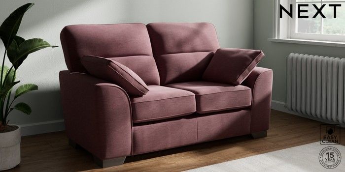 7.3.1 Buy Stamford Highback 2 Seater Small Sofa Fine Chenille Easy Clean Mid Mulberry Purple Large Square Angle - Gunmetal from the Next UK online shop Click here to use our accessible website